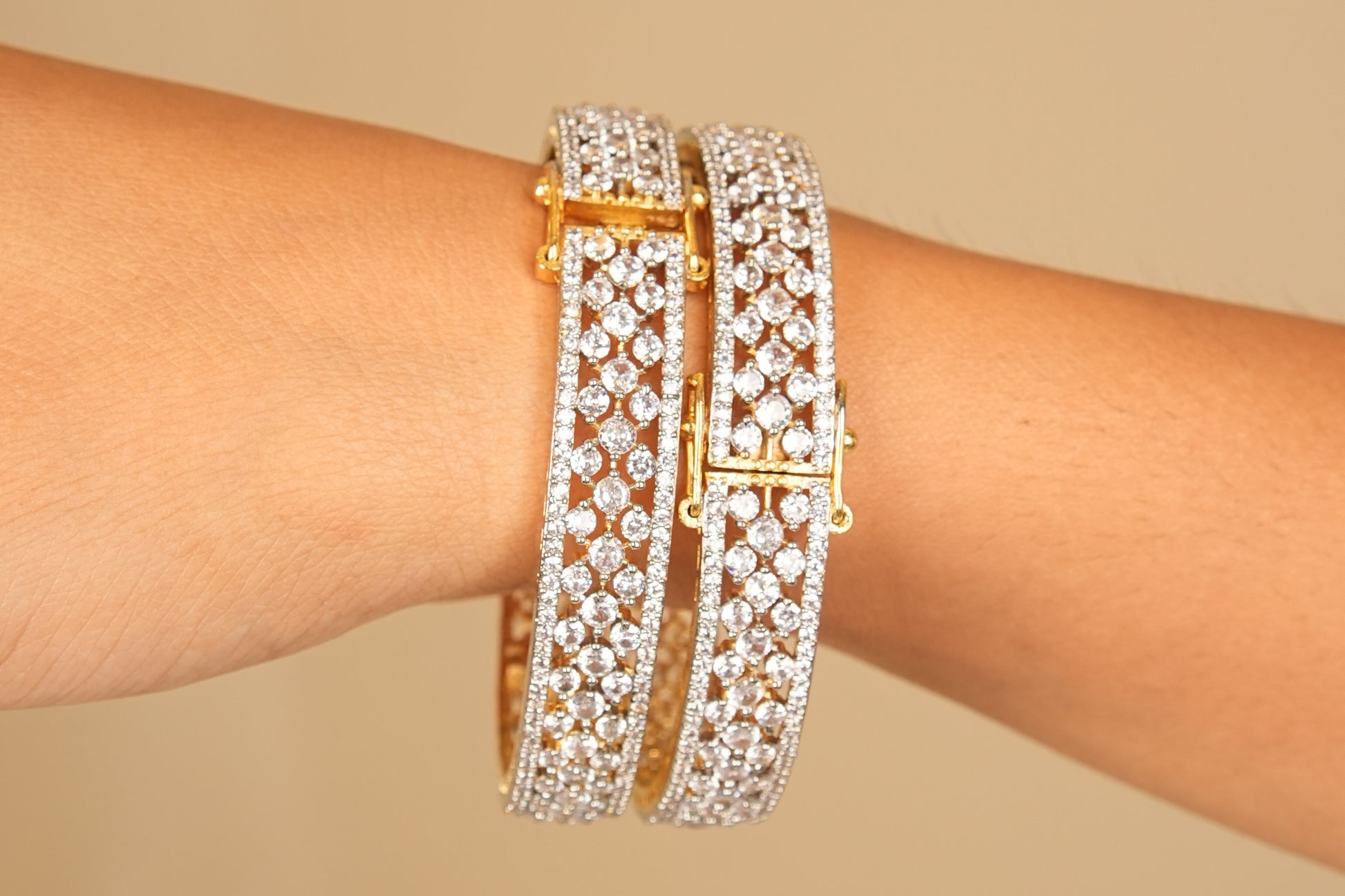 18k Gold finish AD studded bangles, wedding and party wear, Traditional finish bangles, Indian bridal imitation bangles.